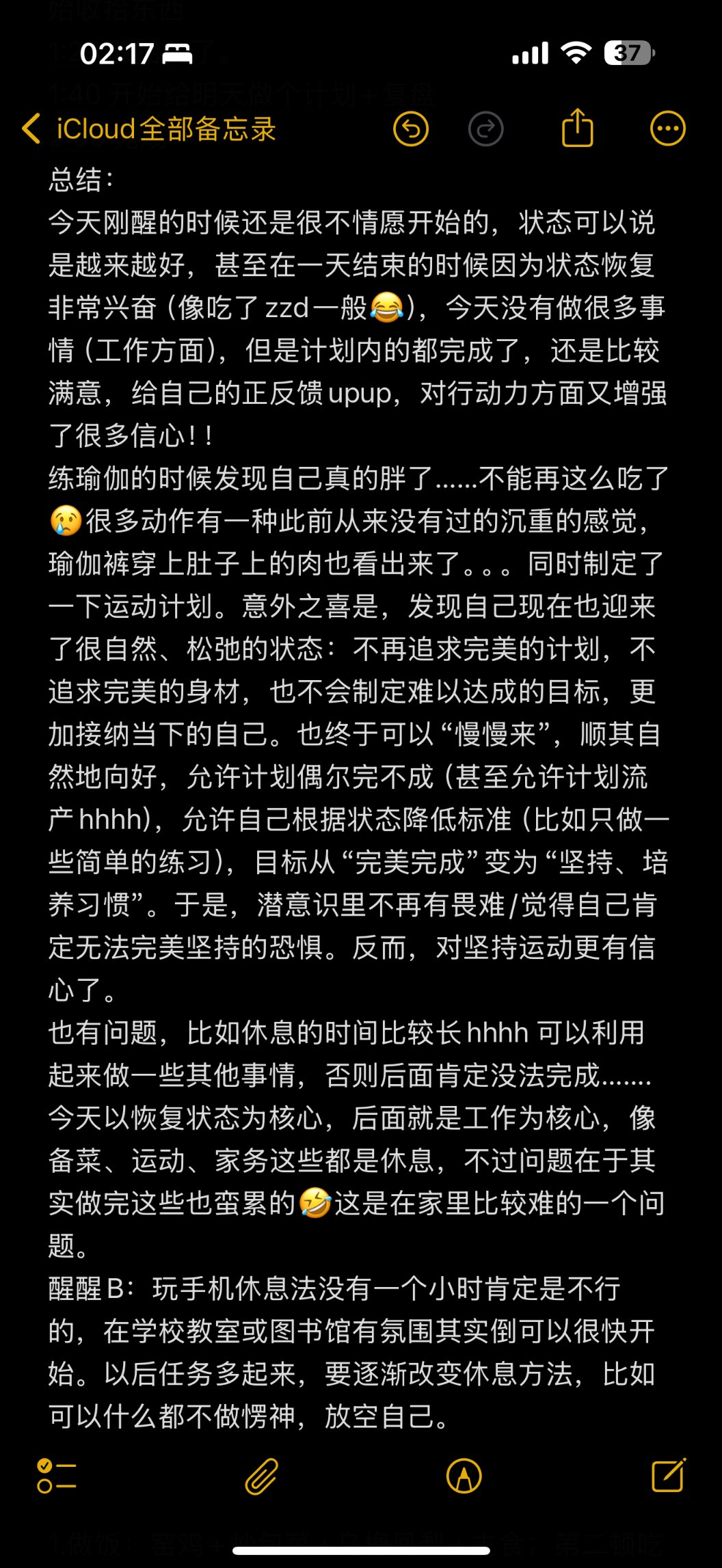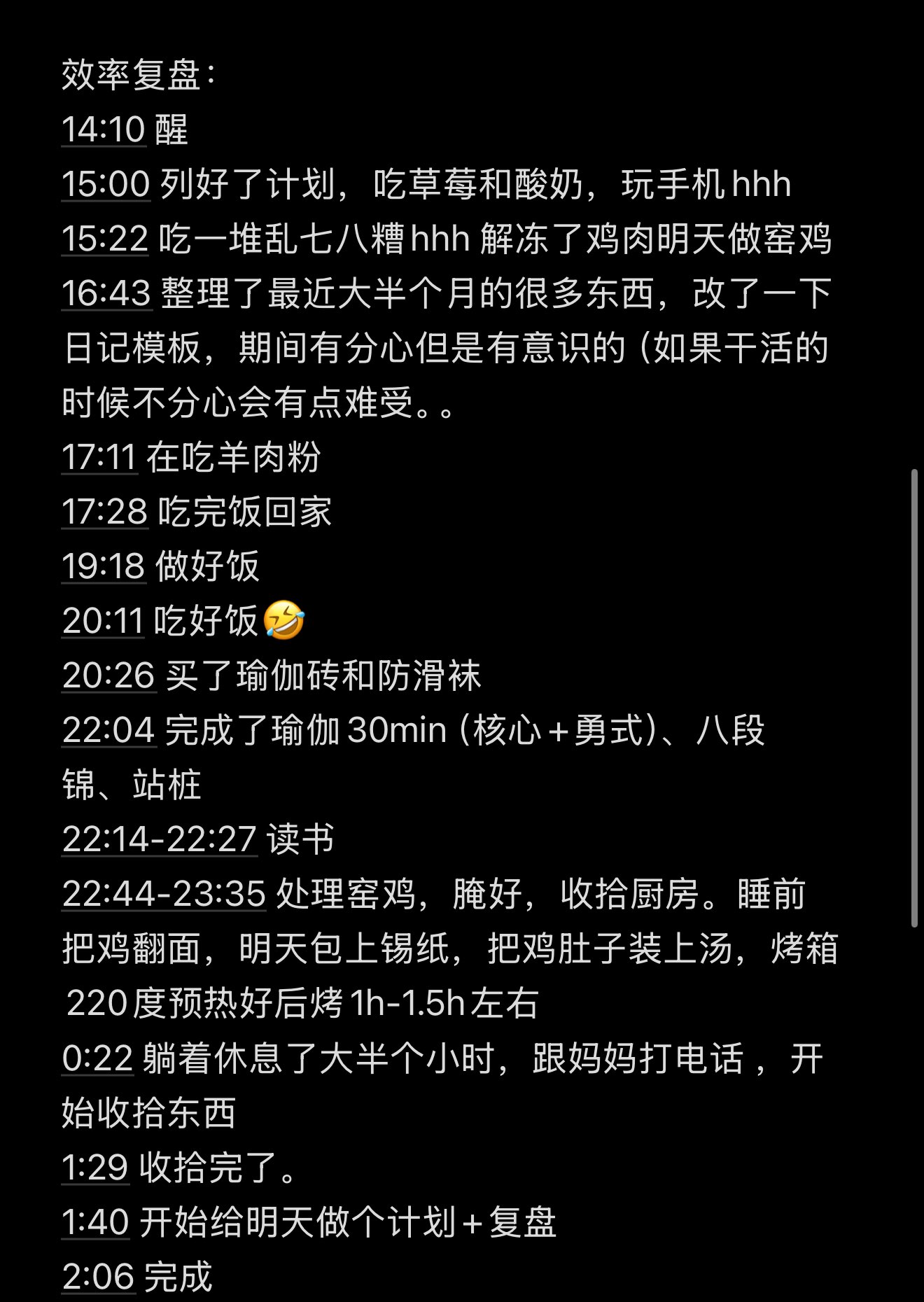 不知不觉就少过了两天,有一天睡了17h……感觉是在补偿前面几天只能睡六个小时然后自己就醒了。不过休息好了之后,觉得自己今天状态还是挺好的,也许是秩序被打断,又恢复了一些我的新鲜感。