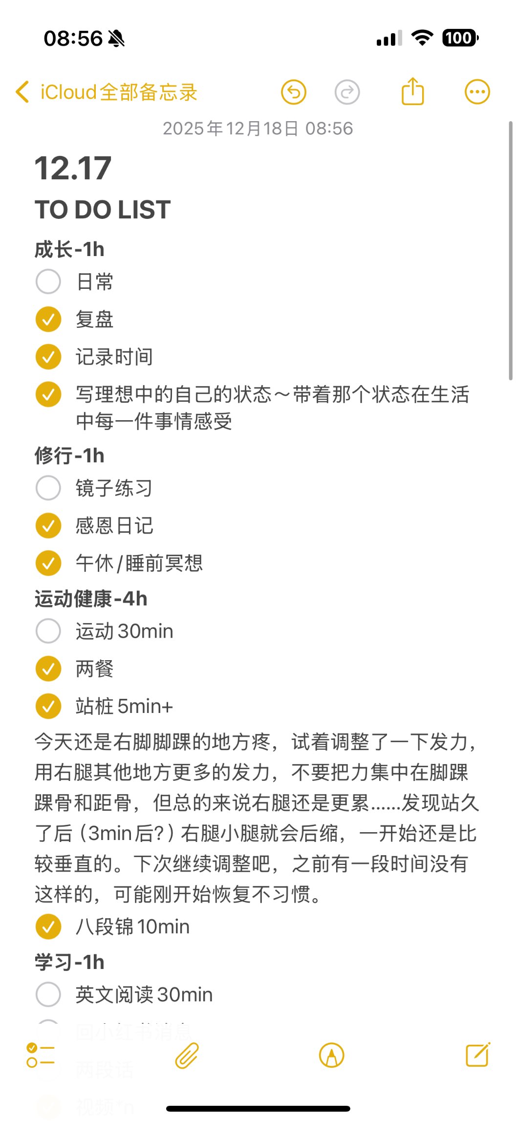- 习惯养成第10天,坚持镜子练习、运动、阅读、记录时间、写日记。